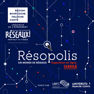 Dans le cadre de la biennale #arts #sciences "Réseaux - Partout tu tisses" 2020-2021, l'exposition virtuelle Résopolis est disponible en ligne. Cette exposition dédiée à l'exploration des réseaux est soutenue par la Région Bourgogne Franche-Comté et portée par l'Université Bourgogne Franche-Comté.
