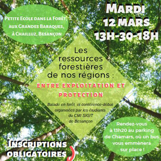 Celle-ci aura lieu le mardi 12 mars de 13h30 à 18h à la "Petite École" dans la Forêt à Chailluz, Besançon.