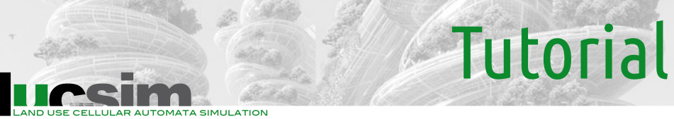 LucSim transition rules must be written in the “Rules editor” (displayed via the “Display” menu). Rules edition is based on a complex syntax specifically designed for LucSim. Basically, this syntax demands to define (1) a departure state and an arrival state separated by (->) and followed by (:), (2) a transition function associated with two parameters (a land use and a distance in pixels), (3) a condition expressed in land use percents or number of cells and (4) a semicolon (;) ending the rule. Several rules can be combined with logical operators (and, or, etc.). Rules can be grouped together using braces ({}) to manage their occurrences and priority. For further explanations about LucSim rules edition, please refer to the complete documentation. When rules are edited, they can be launched using the “Simulation bar” (see section 4.2).